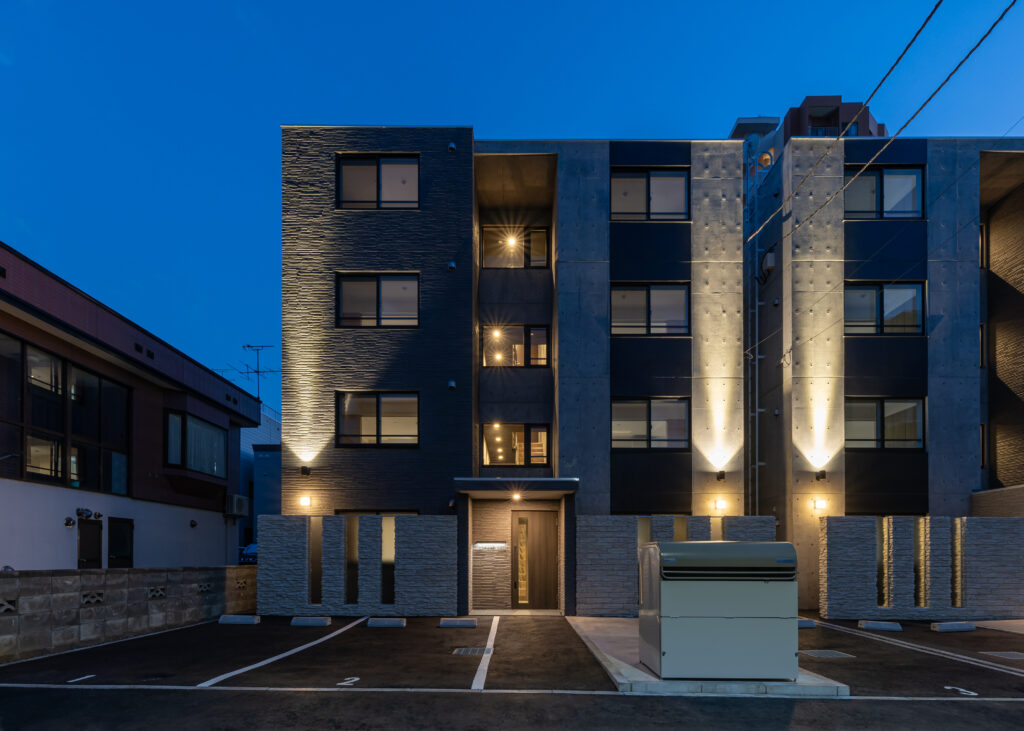 概要:集合住宅(27戸)所在地:札幌市中央区北8条西24丁目敷地面積:413.33㎡ / 延べ床面積:413.33㎡ / 竣工:2024年…