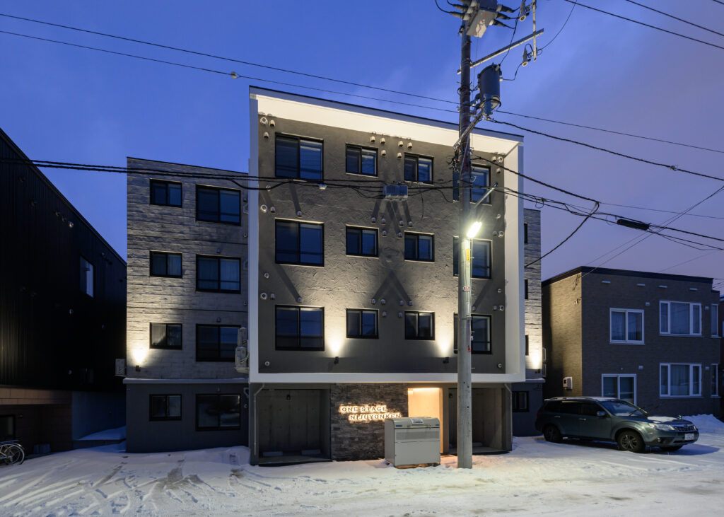 概要:集合住宅(13戸)所在地:札幌市西区宮の沢2条1丁目敷地面積:197.35㎡ / 延べ床面積:527.21㎡ / 竣工:2023年8…