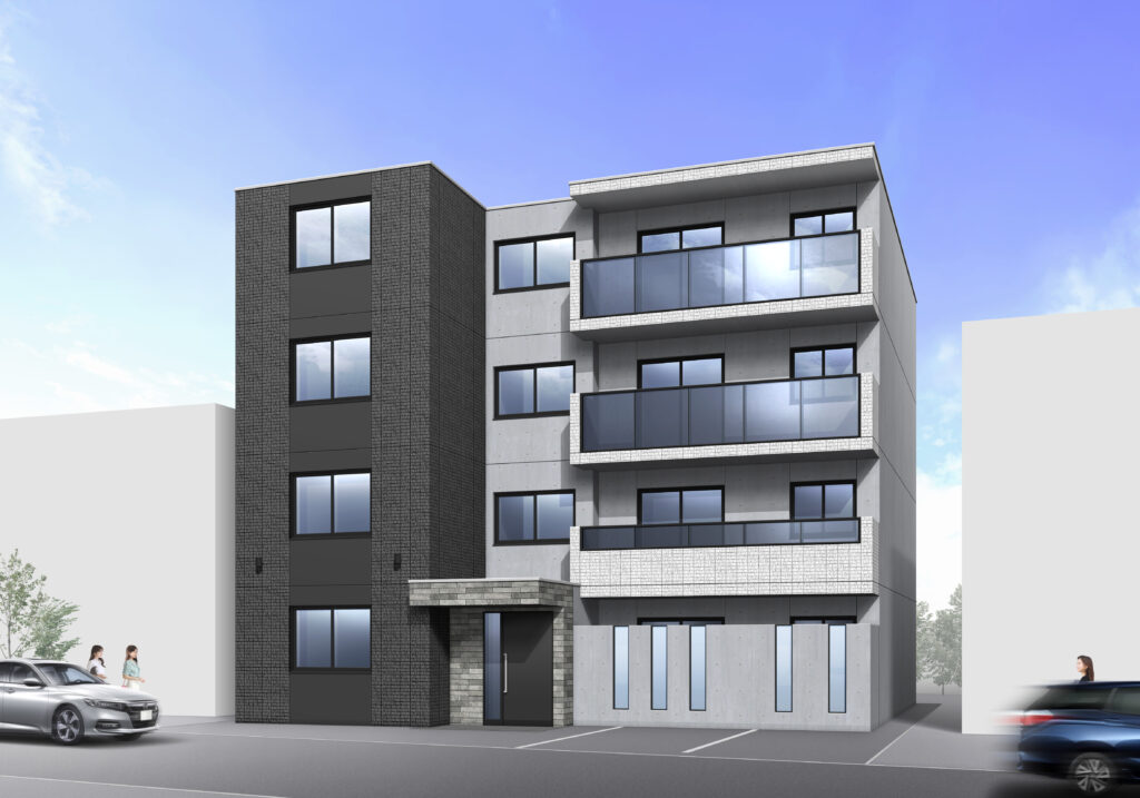 概要:集合住宅(25戸)所在地:札幌市西区琴似4条7丁目敷地面積:364.90㎡ / 延べ床面積:1,181.65㎡ / 竣工:2025年…