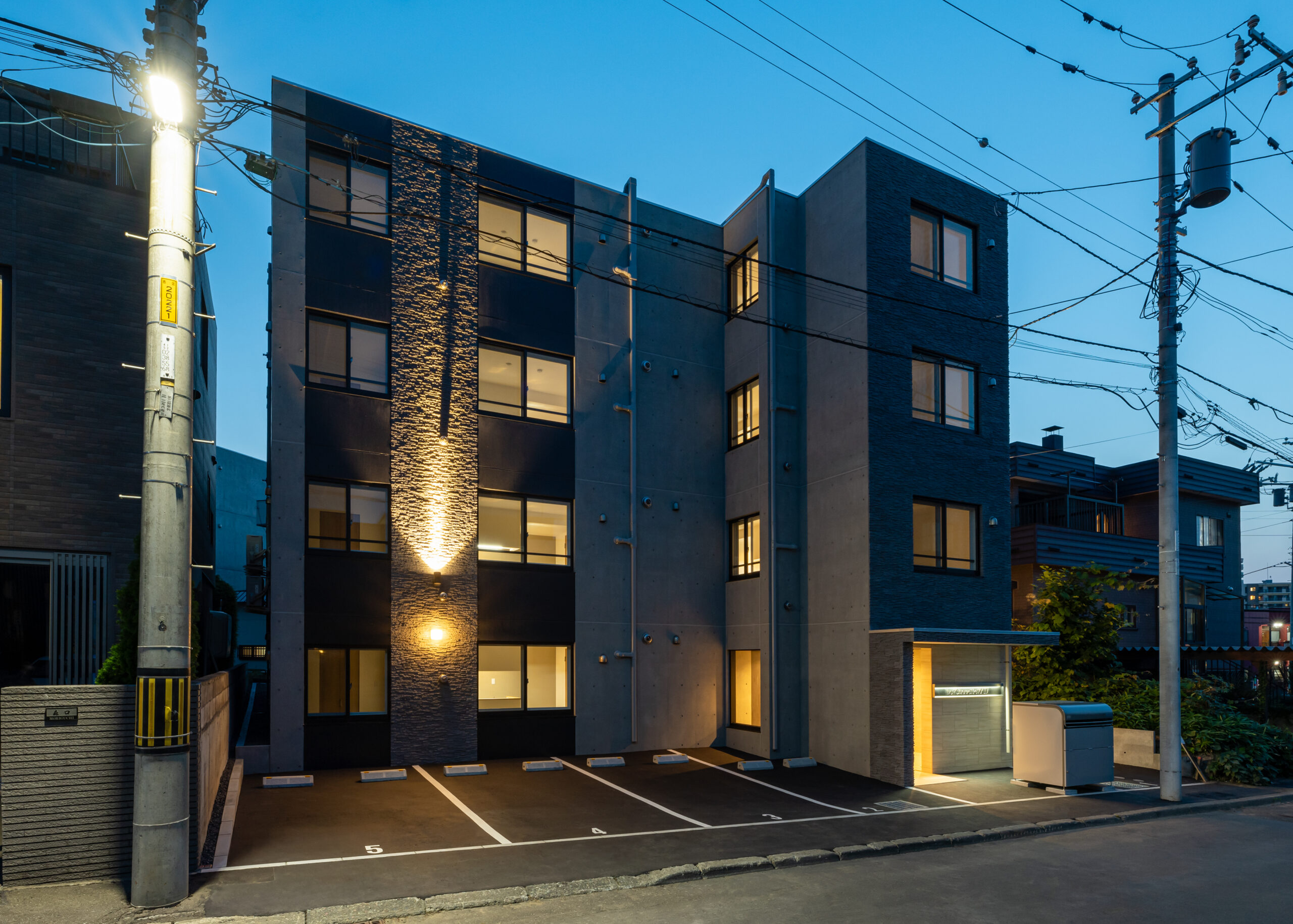 ONE STAGE二十四軒概要:集合住宅(18戸)所在地:札幌市西区二十四軒1条6丁目敷地面積:274.95㎡ / 延べ床面積:728.25㎡ / 竣工:2024年12月 Constru…