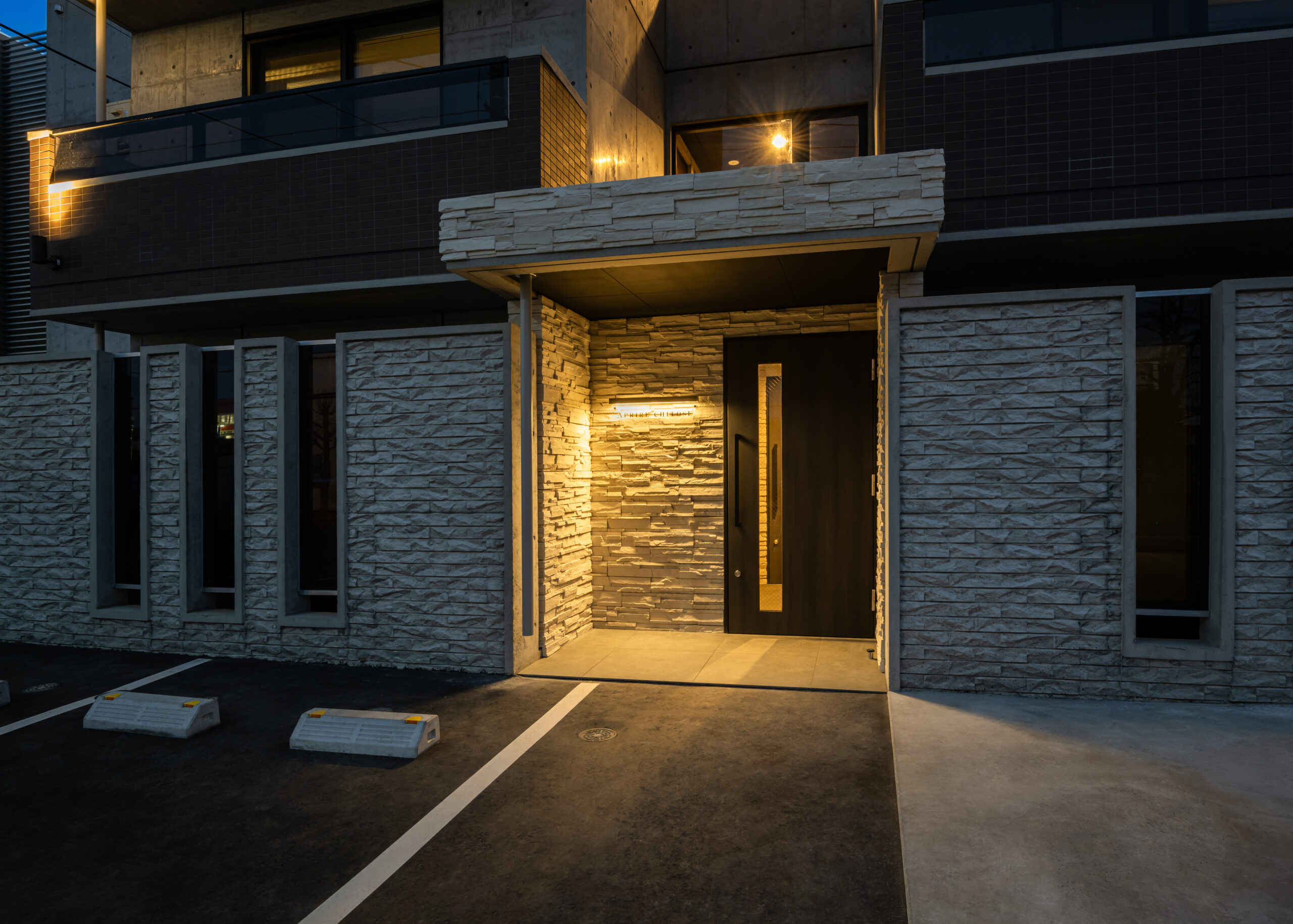 CLARICE麻生概要:集合住宅(15戸)所在地:札幌市北区北38条西8丁目敷地面積:230.78㎡ / 延べ床面積:546.46㎡ / 竣工:2025年9月 Construct…