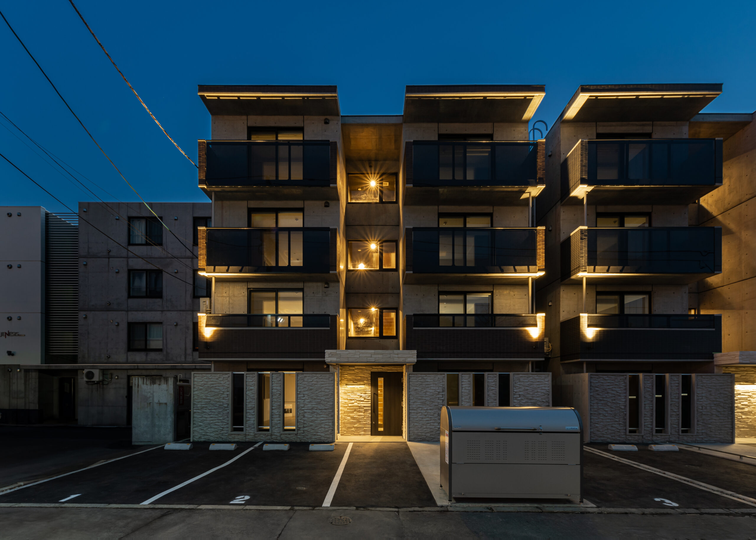 ミレイル豊平概要:集合住宅(20戸)所在地:札幌市豊平区豊平3条6丁目敷地面積:248.20㎡ / 延べ床面積:748.18㎡ / 竣工:2024年9月 Construct…