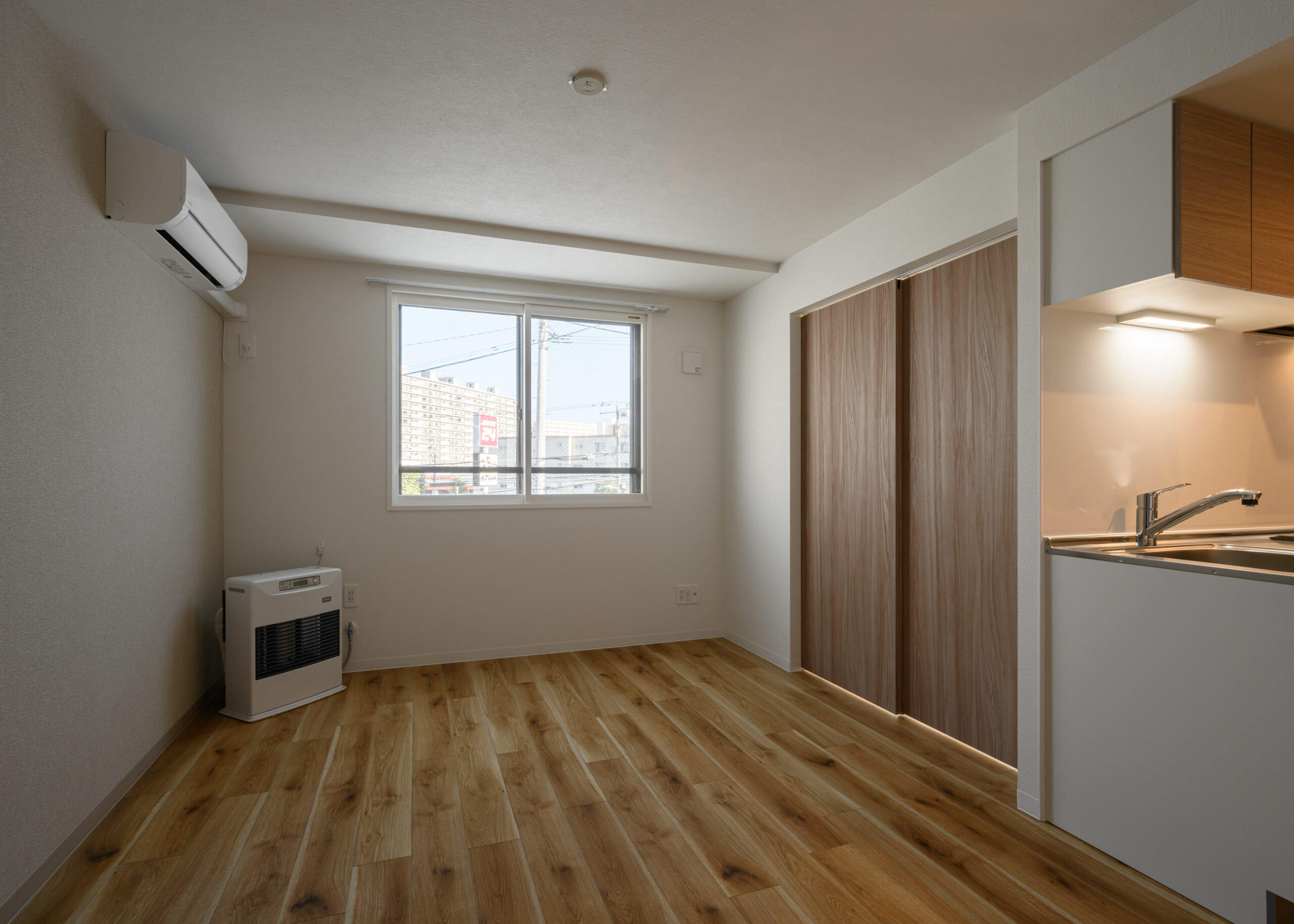 | 概要:集合住宅(15戸) 所在地:札幌市東区北15条東6丁目 敷地面積:157.40㎡ / 延べ床面積:157.40㎡ / 竣工:2024年9月 |