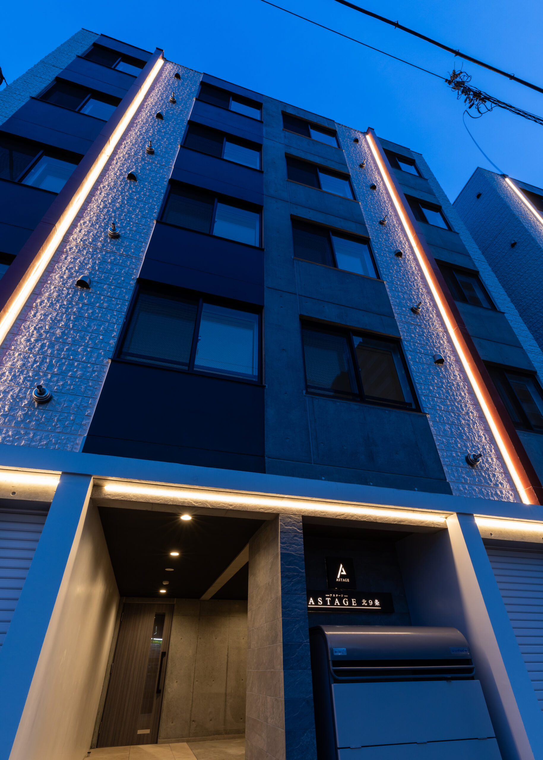概要:集合住宅(18戸) 所在地:札幌市東区北9条東2丁目 敷地面積:197.89㎡ / 延べ床面積:197.89㎡ / 竣工:2024年6月 |