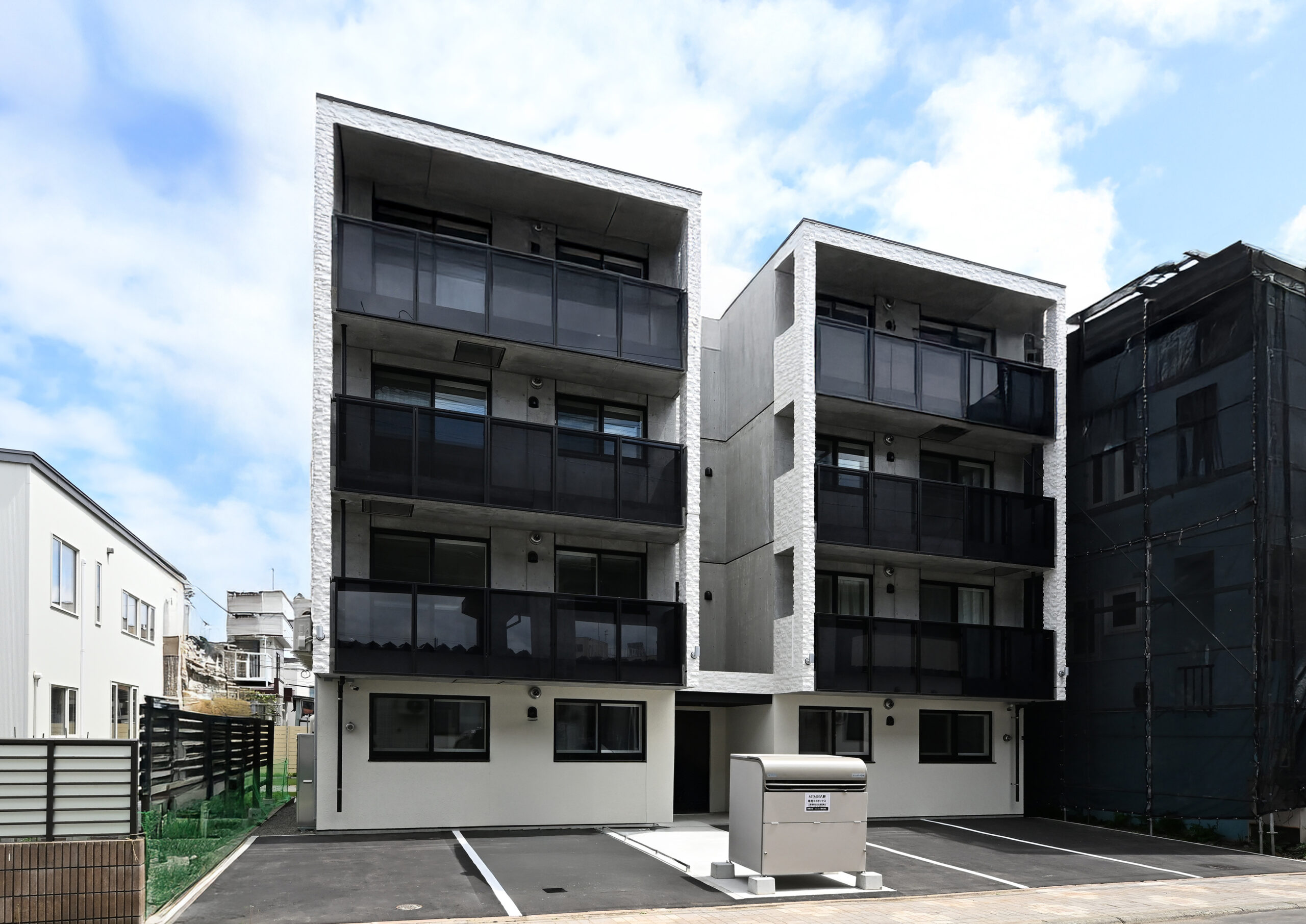 概要:集合住宅(27戸)所在地:札幌市中央区北8条西24丁目敷地面積:413.33㎡ / 延べ床面積:413.33㎡ / 竣工:2024年2月 Construc…