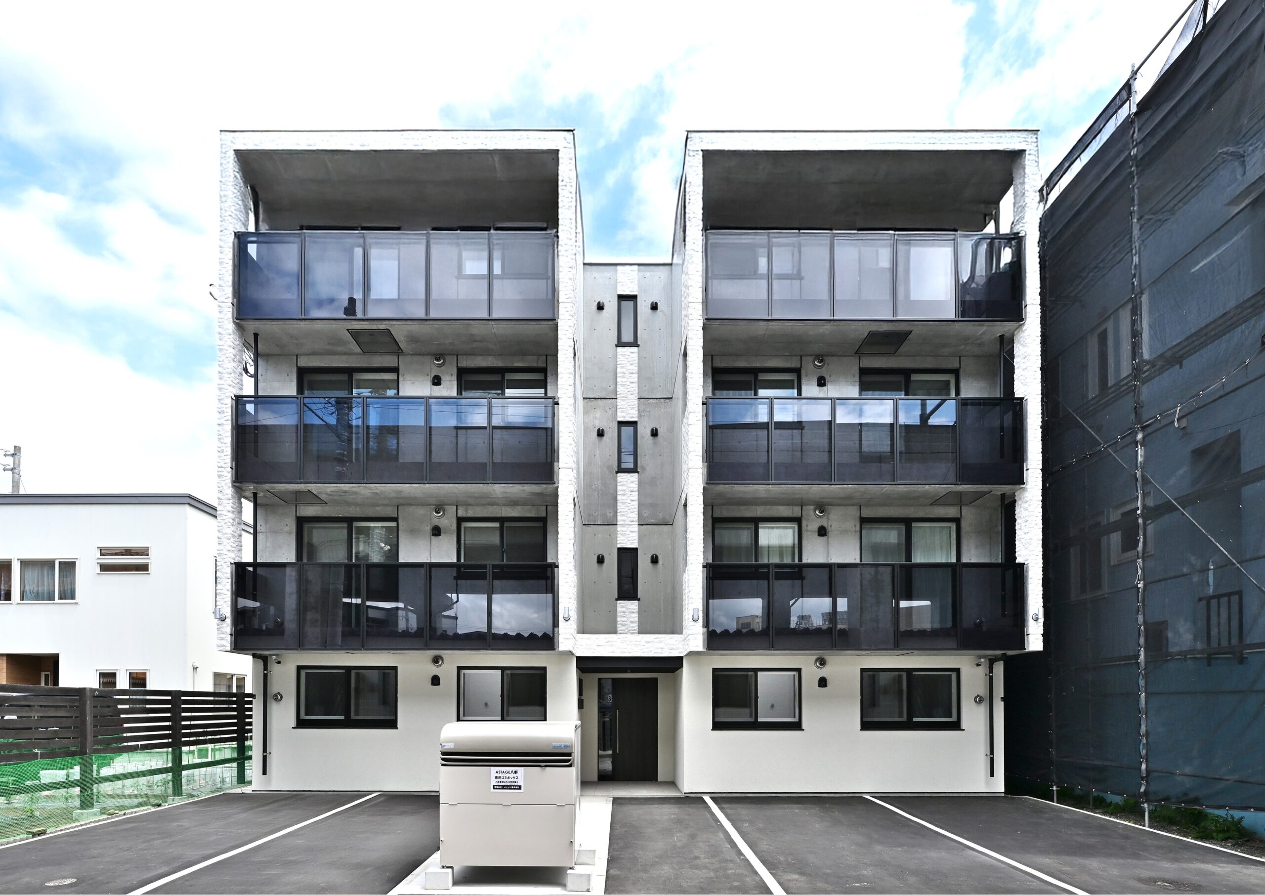 概要:集合住宅(14戸)所在地:札幌市手稲区前田2条11丁目敷地面積:306.10㎡ / 延べ床面積:712.04㎡ / 竣工:2024年12月 Constru…
