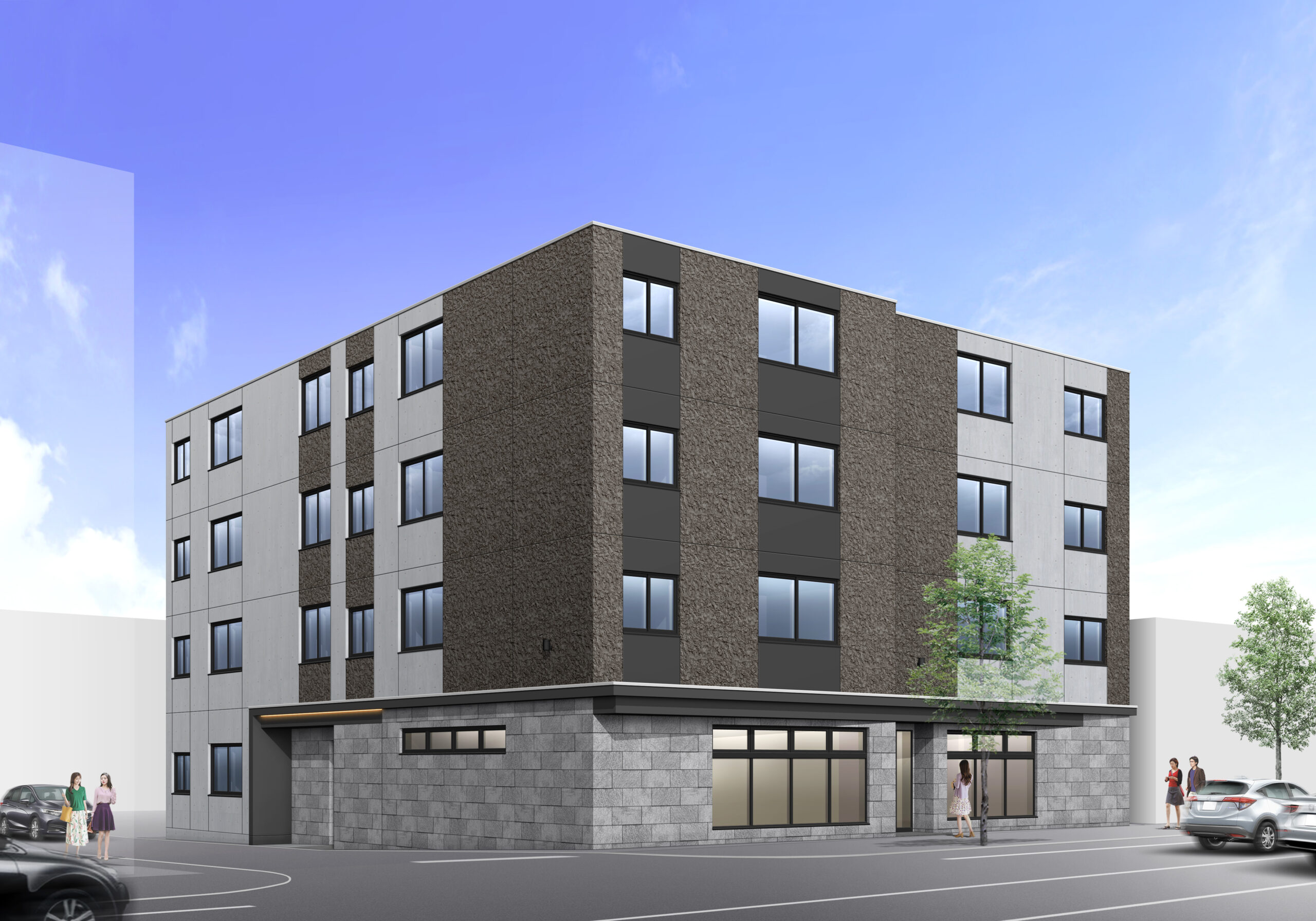 概要:集合住宅(25戸) 所在地:札幌市西区琴似4条7丁目 敷地面積:364.90㎡ / 延べ床面積:1,181.65㎡ / 竣工:2025年9月 |