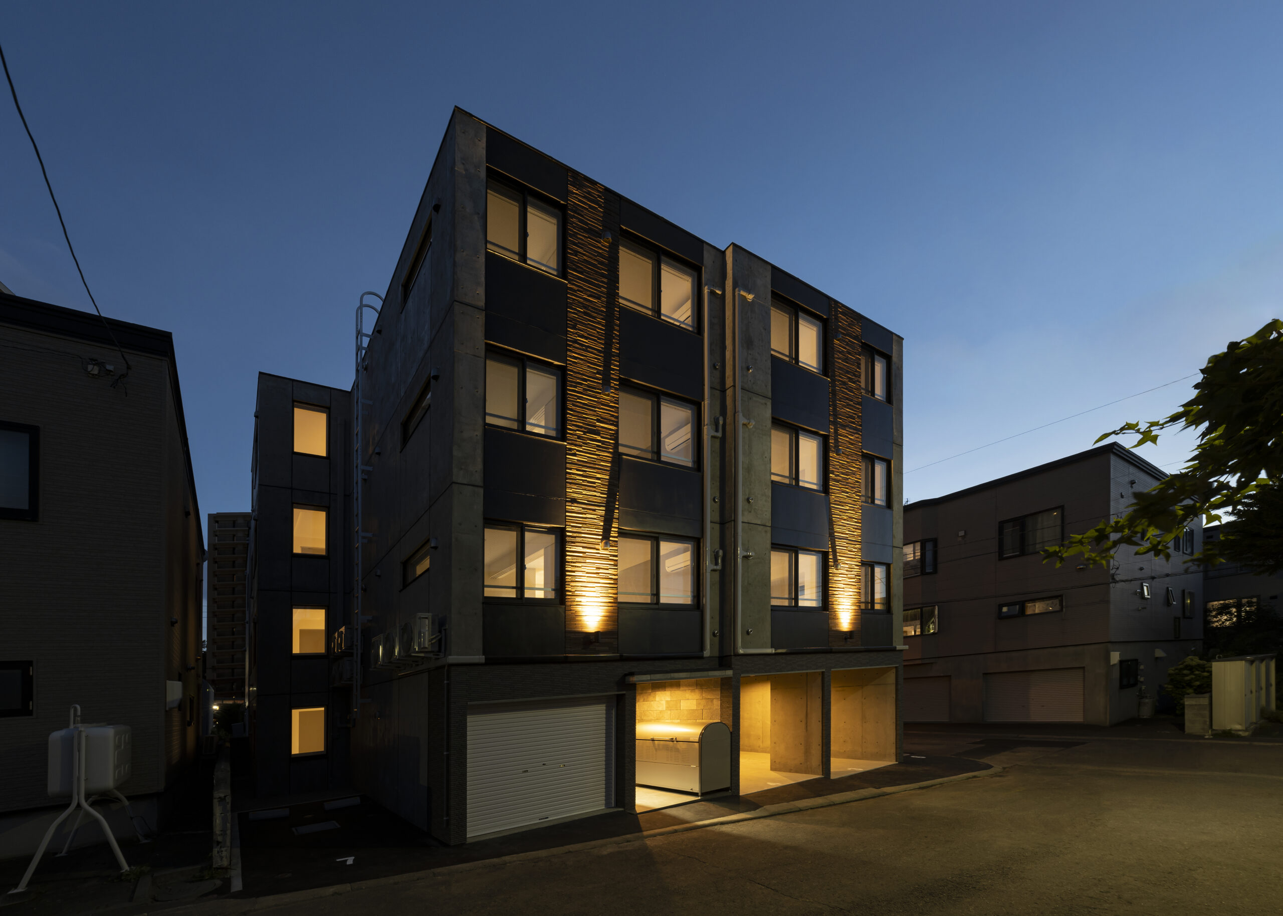 ONE STAGE二十四軒概要:集合住宅(18戸)所在地:札幌市西区二十四軒1条6丁目敷地面積:274.95㎡ / 延べ床面積:728.25㎡ / 竣工:2024年12月 Constru…