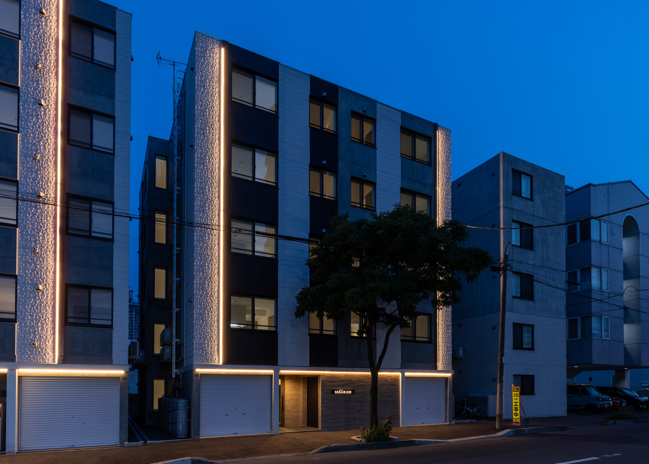 | 概要:集合住宅(18戸) 所在地:札幌市東区北9条東2丁目 敷地面積:192.96㎡ / 延べ床面積:192.96㎡ / 竣工:2024年6月 |